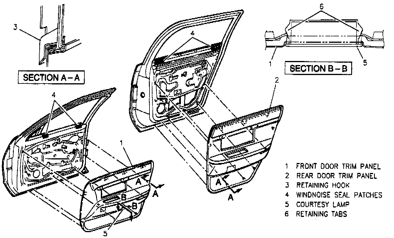 2. Door trim panel. Align hooks with door, push in and down on trim panel.