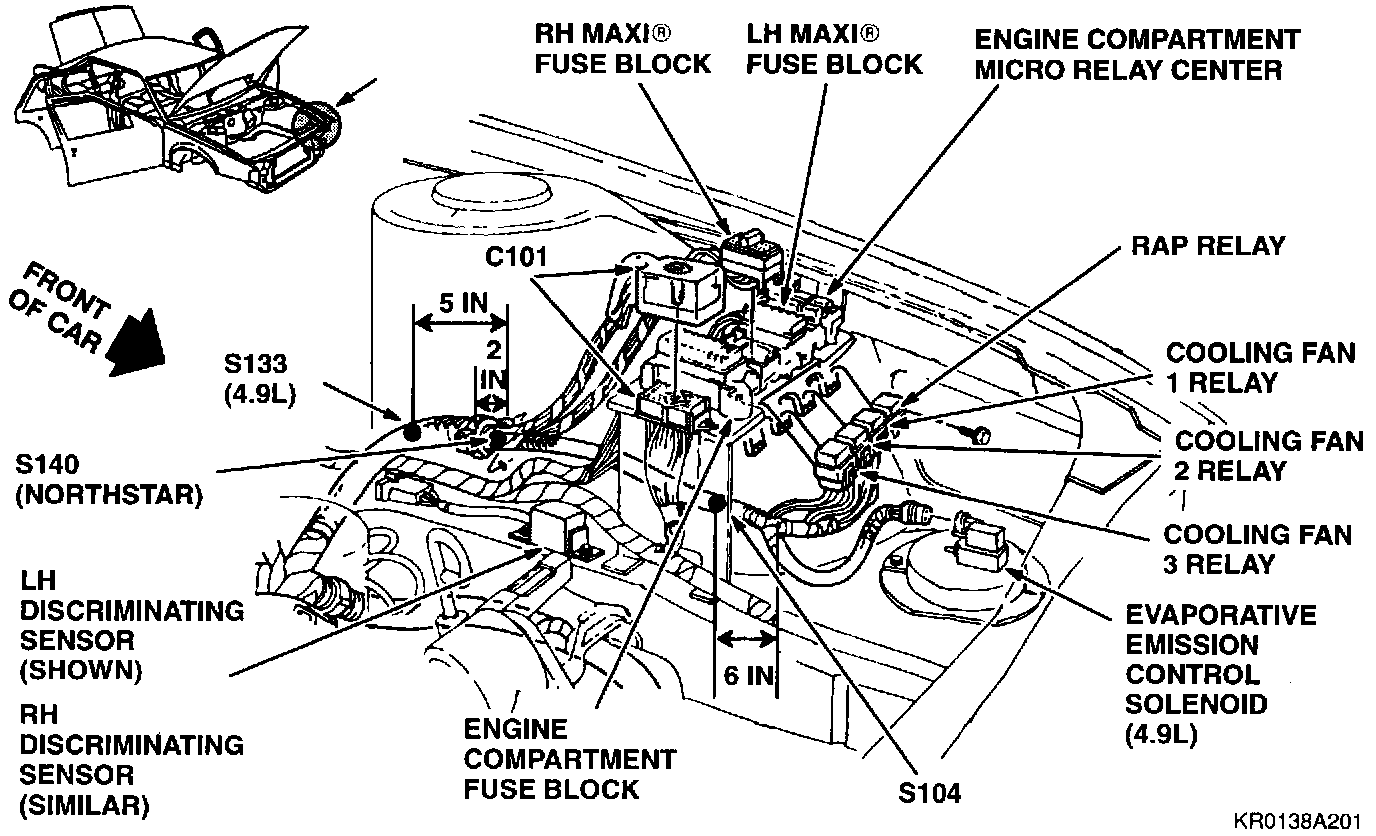 LH Side Of Engine Compartment (4.9L Shown, Northstar Similar):