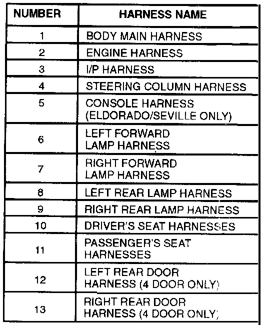 Harness Description Table: