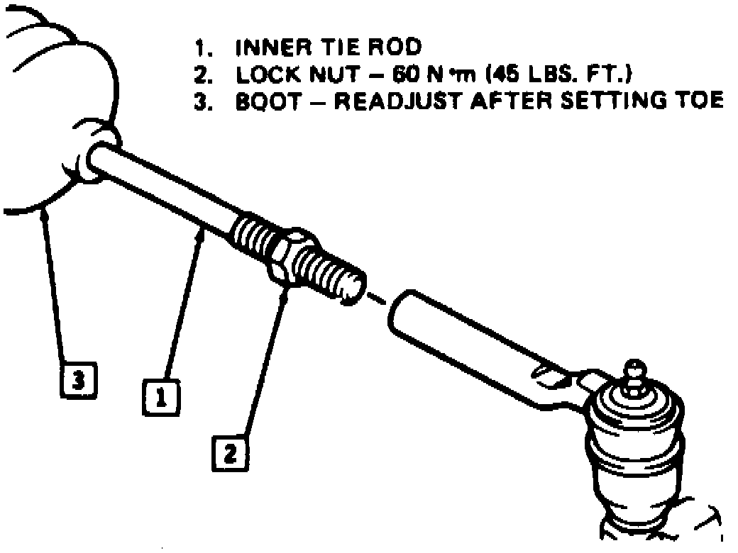 Loosen locknut on inner tie rods,
