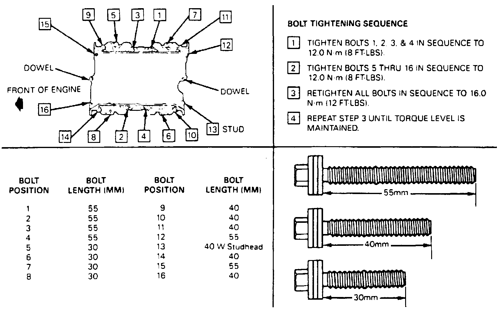Fig. 2 Intake Manifold Bolt Size & Bolt Torque Sequence: