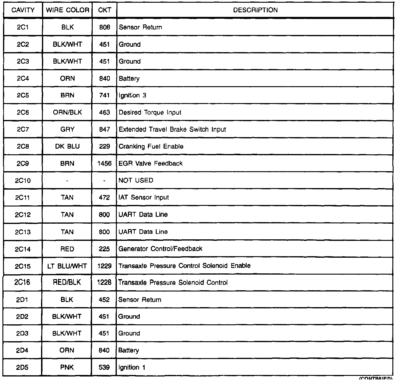 Harness Connector Faces: PCM -2C/2D (Part 2 Of 2):