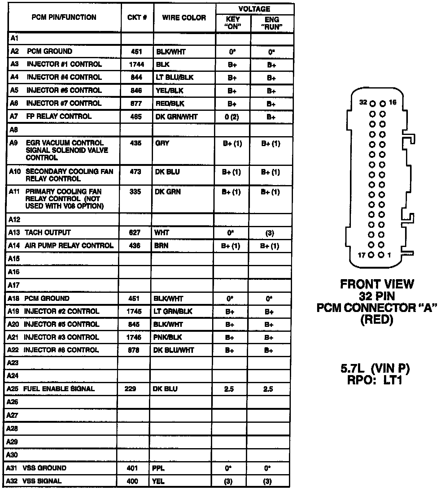 PCM Connector Pinouts:
