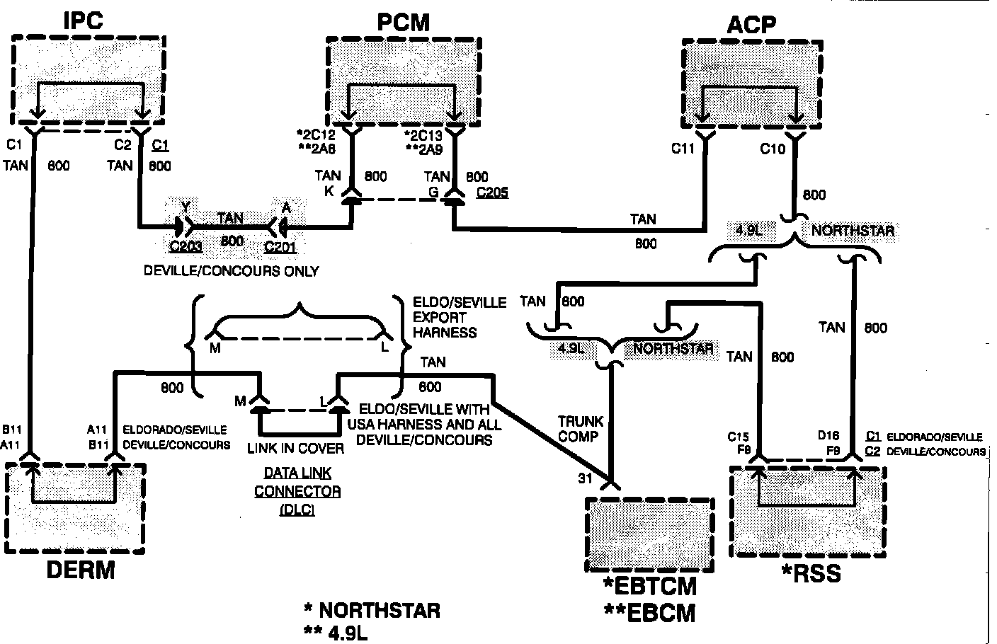 All major components (IPC, CCC, PCM, DIC, etc.) in the system are always in continuous communication with each other to provide accurate control over the many sub-systems involved. When one or more of these sub-system circuits exceeds pre-programmed limits a malfunction is indicated by a service engine soon warning lamp, and a backup function may be activated until the malfunction is corrected. The communications line is a single circuit (CKT 800) which is referred to as the data line or serial data line.