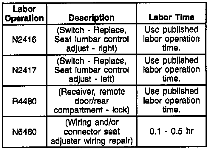 1. Check for a shorted lumbar seat switch by disconnecting switch connector. If the concern is corrected, replace lumbar seat switch, P/N 16735429.