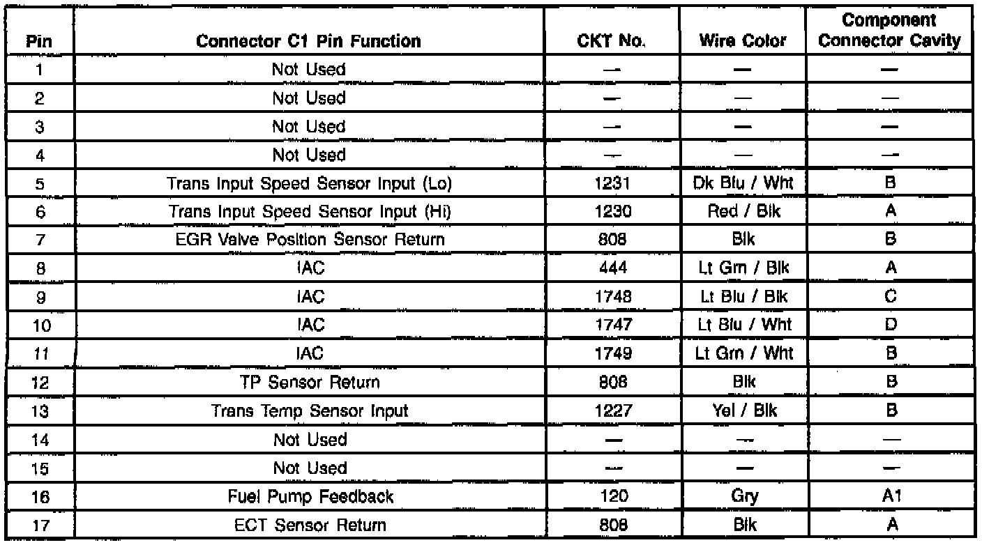 PCM Connector C1 Pin Functions - Part 1 Of 3: