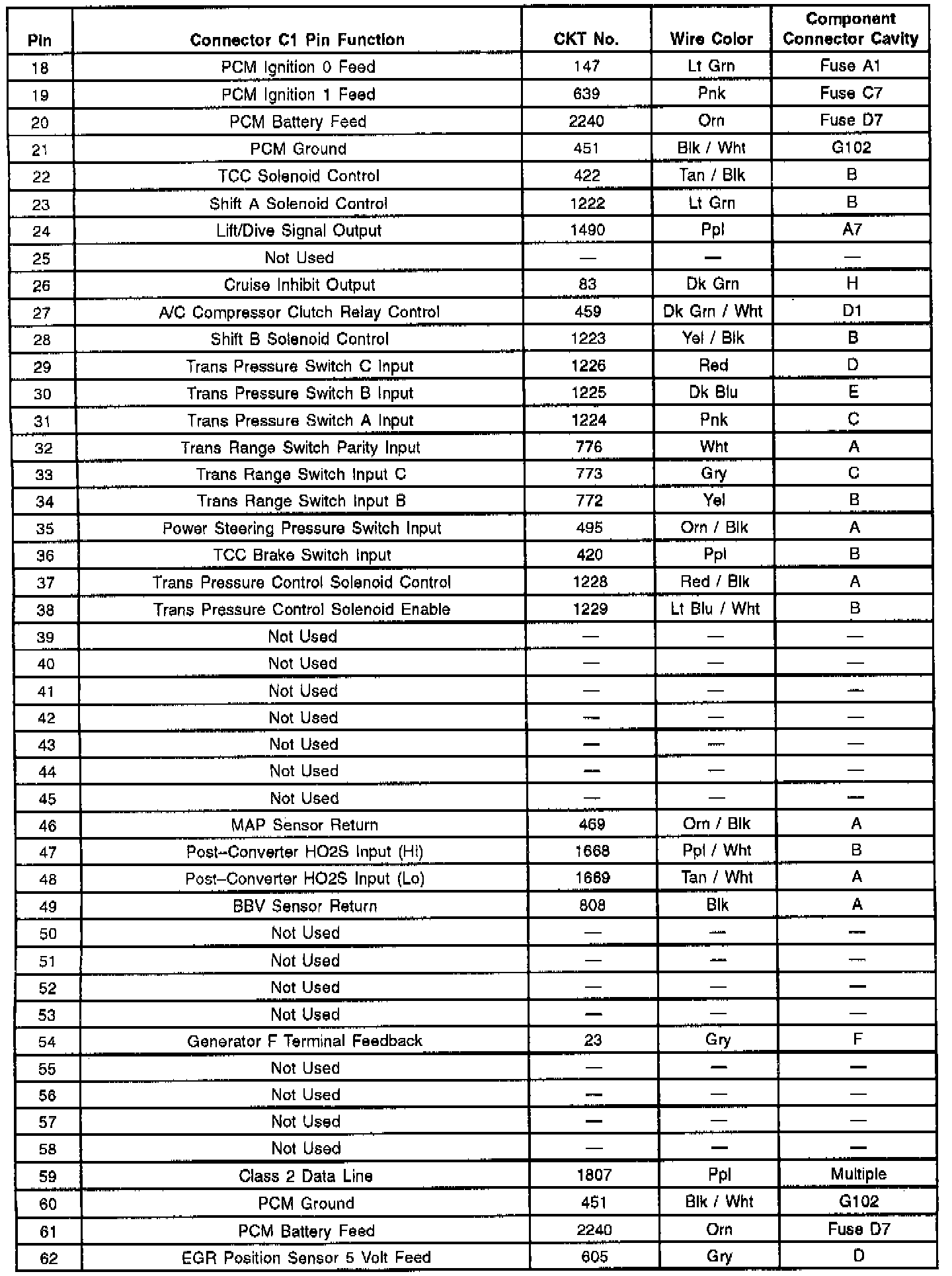PCM Connector C1 Pin Functions - Part 2 Of 3: