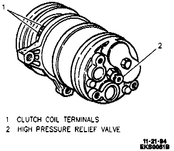 A magnetic clutch is used to engage the compressor shaft. when voltage is applied to the clutch coil (by closing contacts in the thermostatic switch), the clutch plate and hub assembly (which is solidly coupled to the compressor shaft), is drawn by magnetic force rearward toward the pulley which rotates freely on the front head casting. The magnetic force holds the clutch plate and pulley together as one unit. The compressor shaft then turns with the pulley. When the PCM removes the voltage from the clutch coil, springs in the clutch plate and hub assembly move the clutch plate away from the pulley and the clutch plate and compressor shaft cease to rotate.