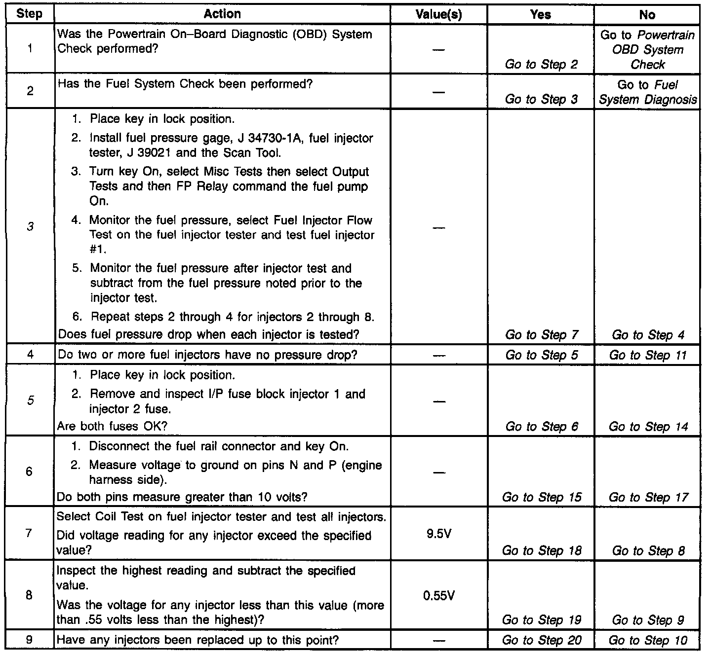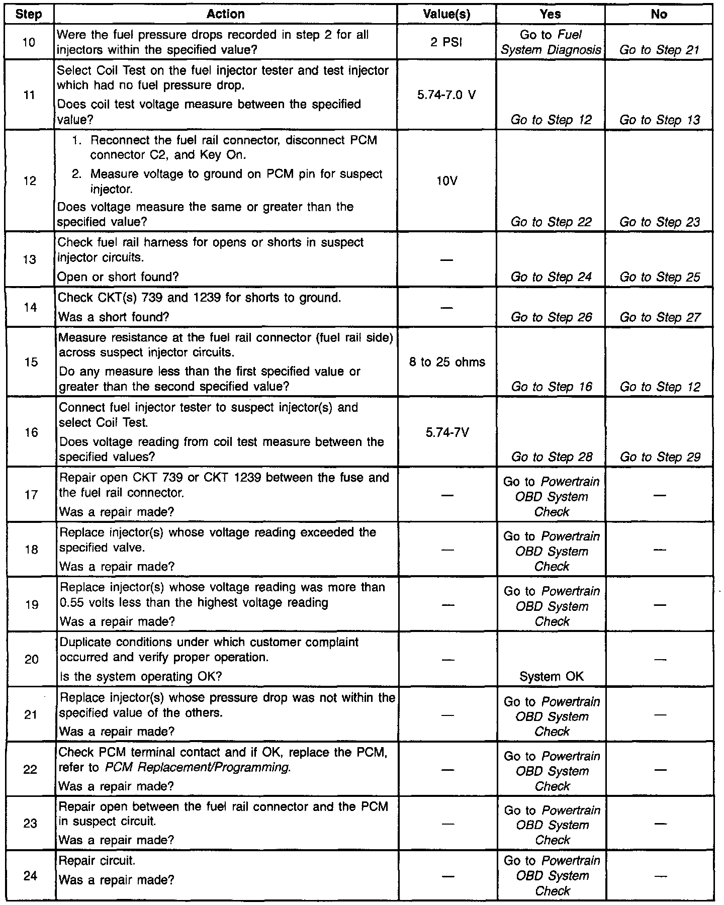 Fuel System Diagnosis (Injector Flow Drop Check) (continued):