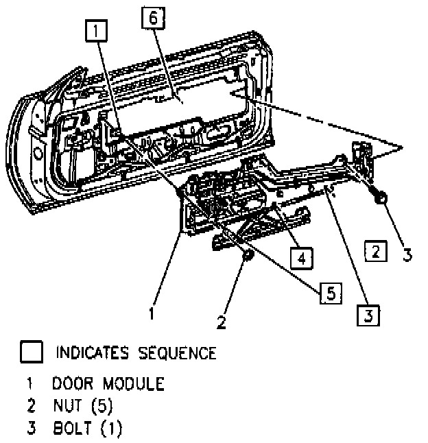 7. Wiring harness from lock, window motor and module.