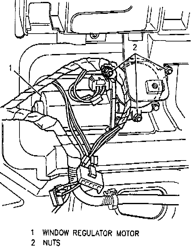 WINDOW REGULATOR MOTORCAUTION: If this procedure must be done with the regulator out of the vehicle, the counterbalance spring must be removed first. The regulator lift arms are under tension from the counterbalance spring and can cause serious injury if the motor is removed without removing the spring.