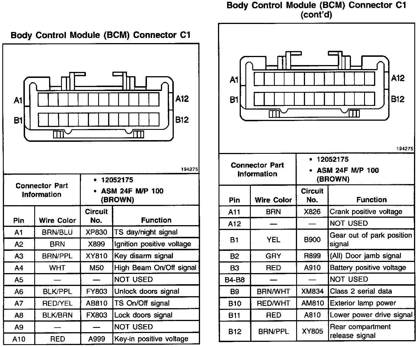 Body Control Module (BCM) Connector: C1: