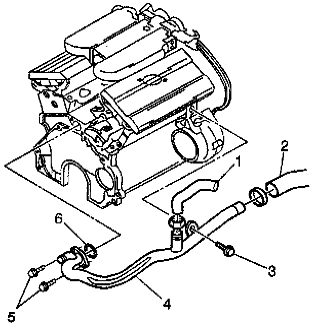 2. Install the radiator outlet hose to the coolant intake pipe (4).