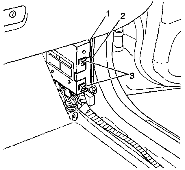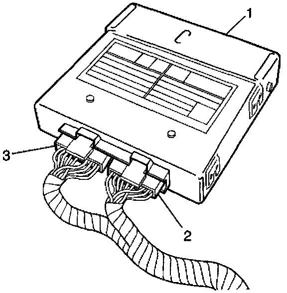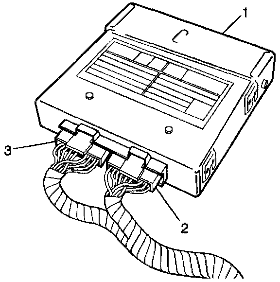 1. Install the harness connectors (2 and 3) to the BCM (1).