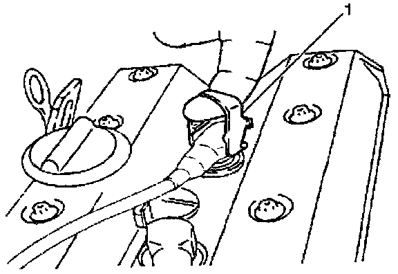 7. Use the spark plug boot remover tool (1) attached to spark plug boot.