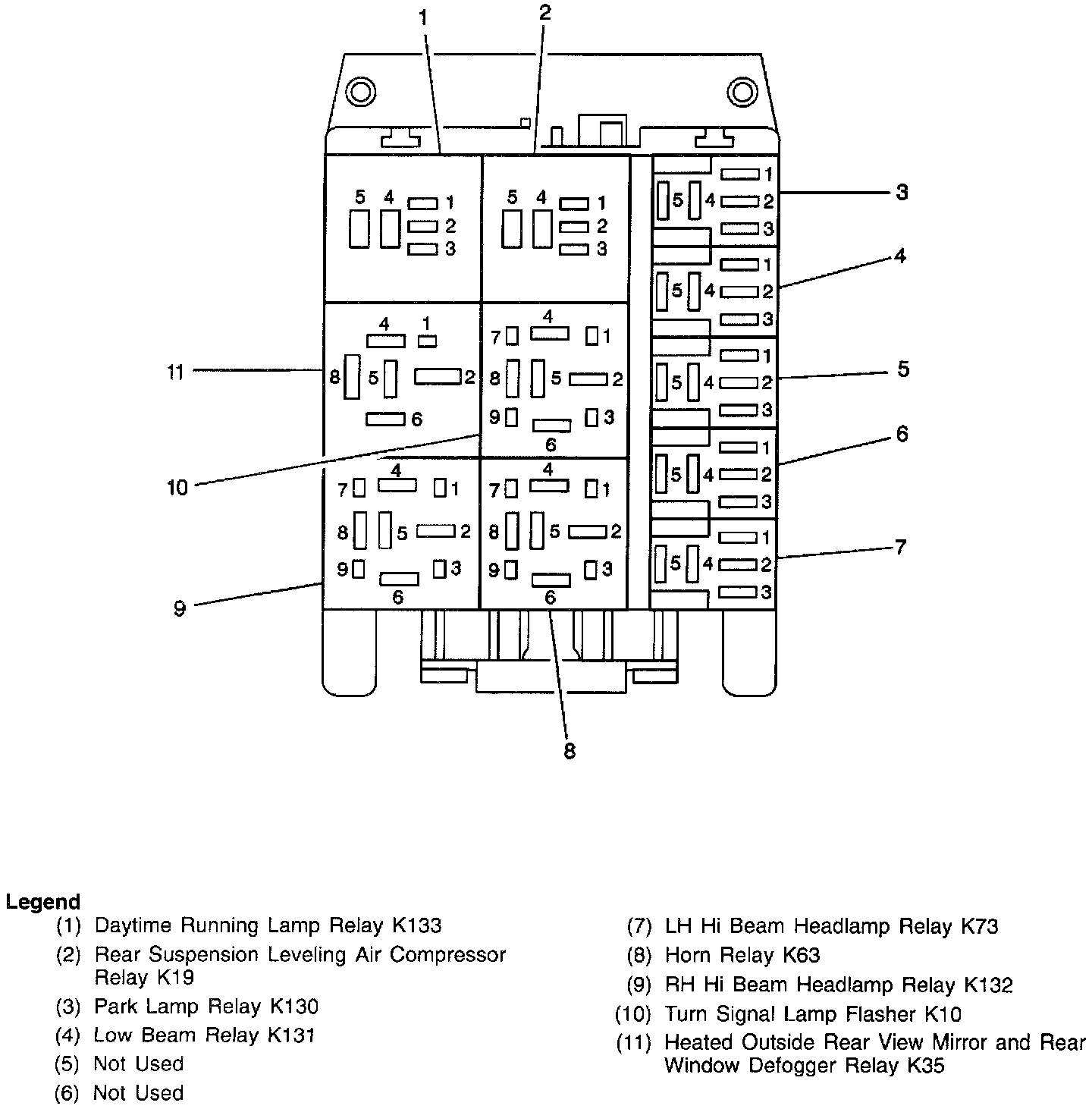 Fuse Block Details Schematics: Front View Of Relay Box: