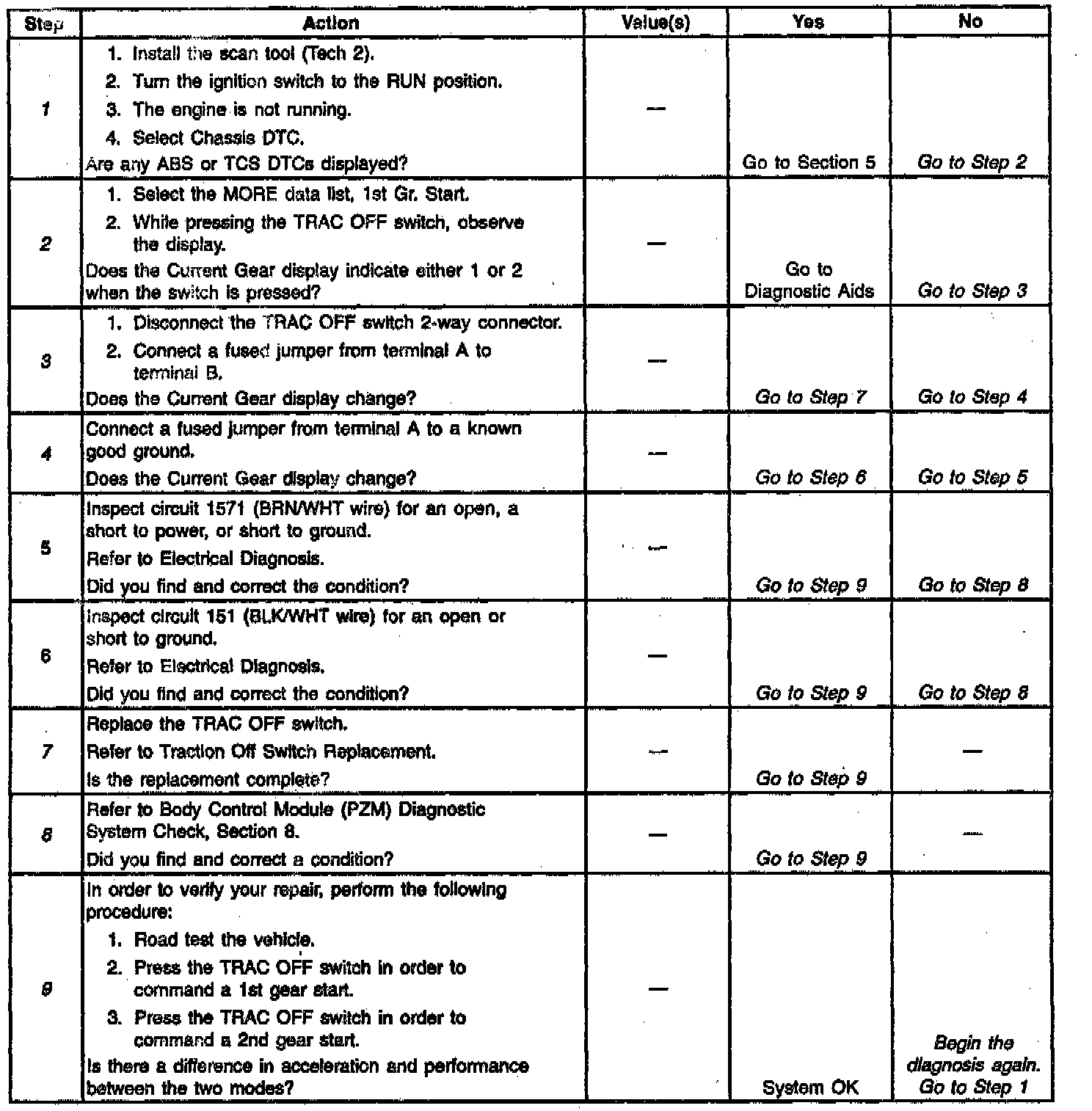 7. This Step replaces the TRAC OFF switch. Previous Steps found no fault in the power or ground circuits.