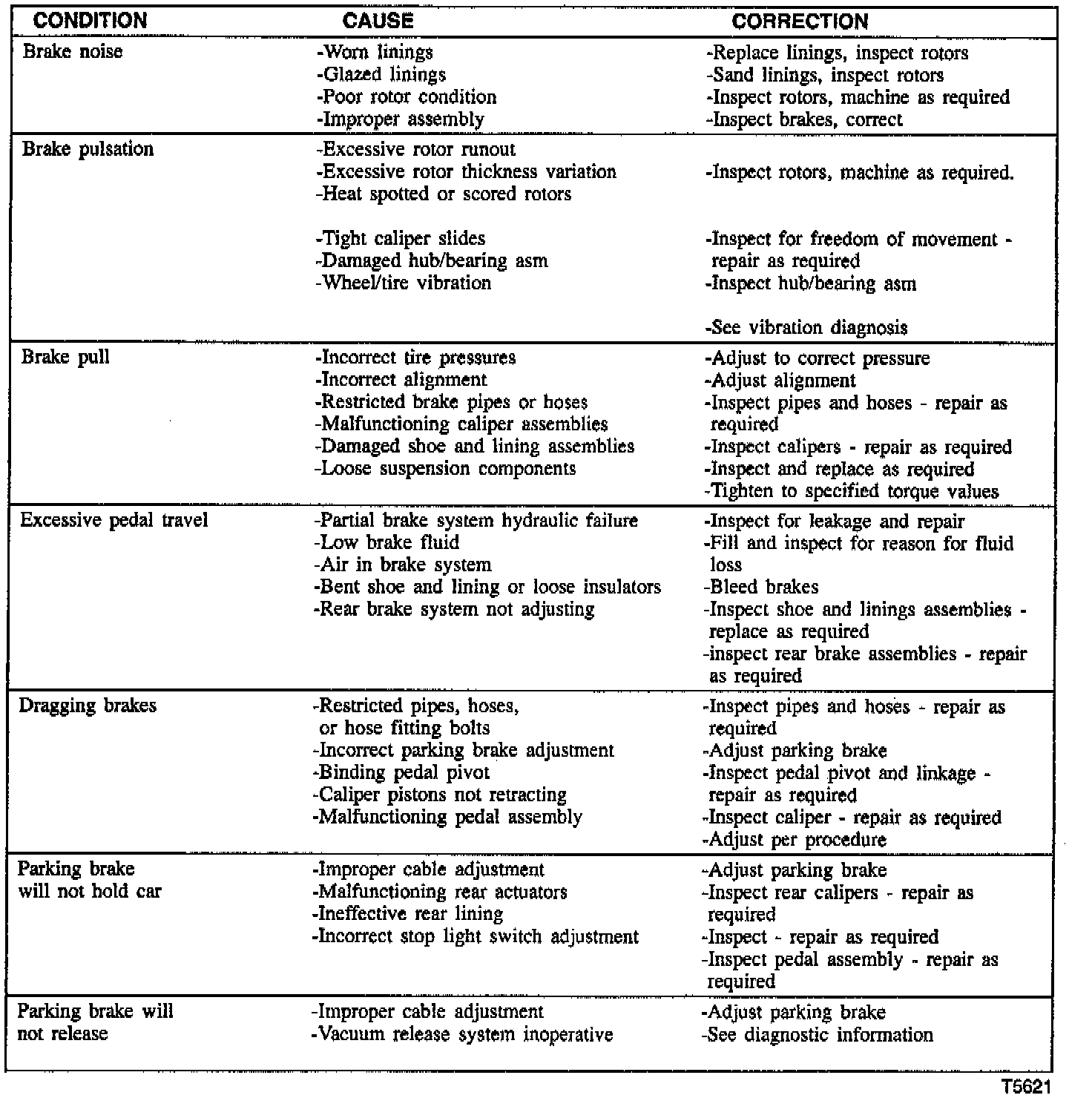 Brake Diagnosis Chart:
