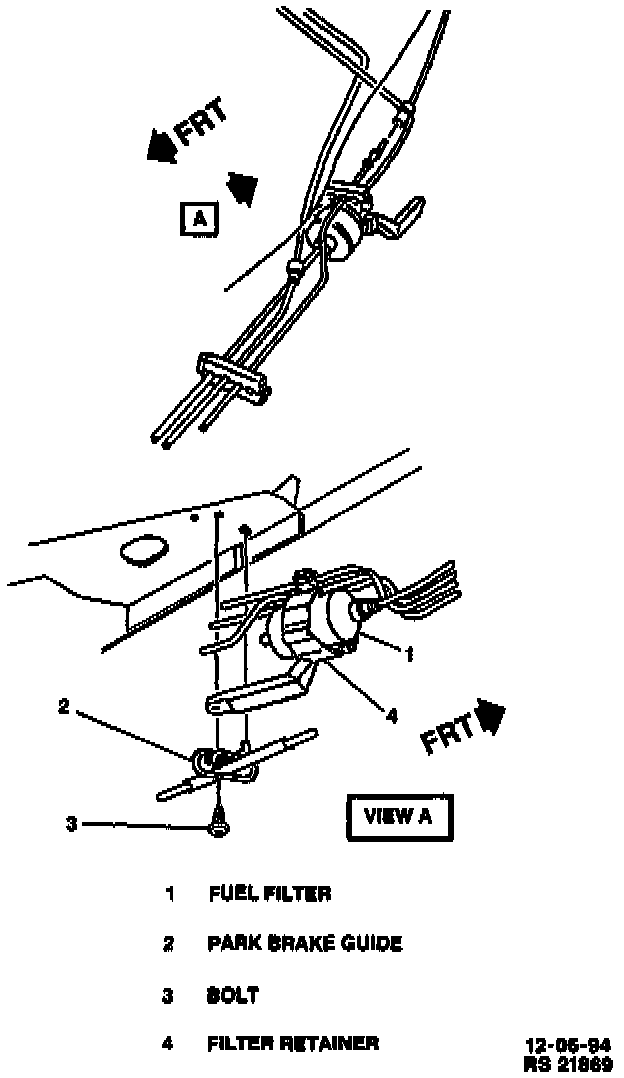 An in-line filter is used in the fuel feed pipe ahead of the fuel injection system. The filter element is made of paper, and is designed to trap particles in the fuel that may damage the injection system. Quick connect type fitting are used at both ends of the filter.