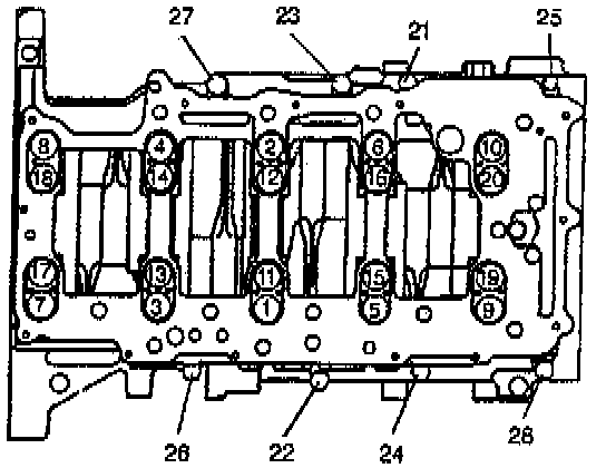 Main Bearing Bolts (numbers 1 through 20) to