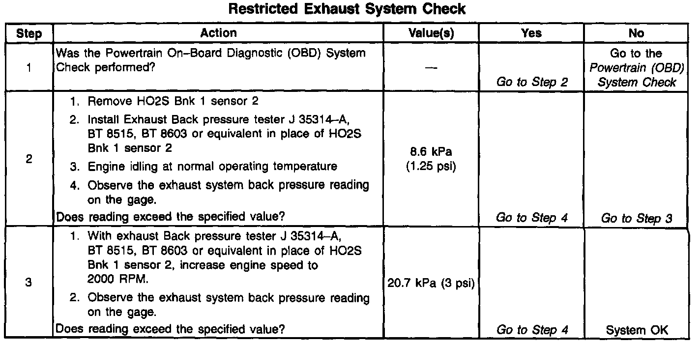 System Check - Restricted Exhaust
