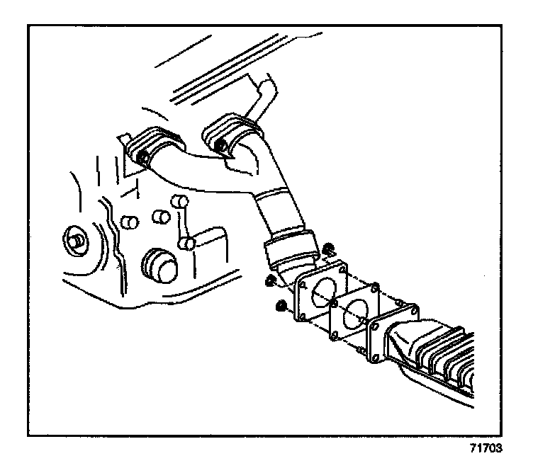 5. Remove the exhaust manifold rear pipe flange bolts.