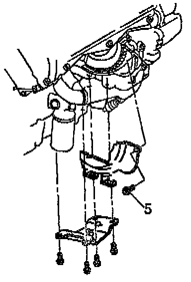 3. Remove the attaching bolts and the engine-to-transmission brace.