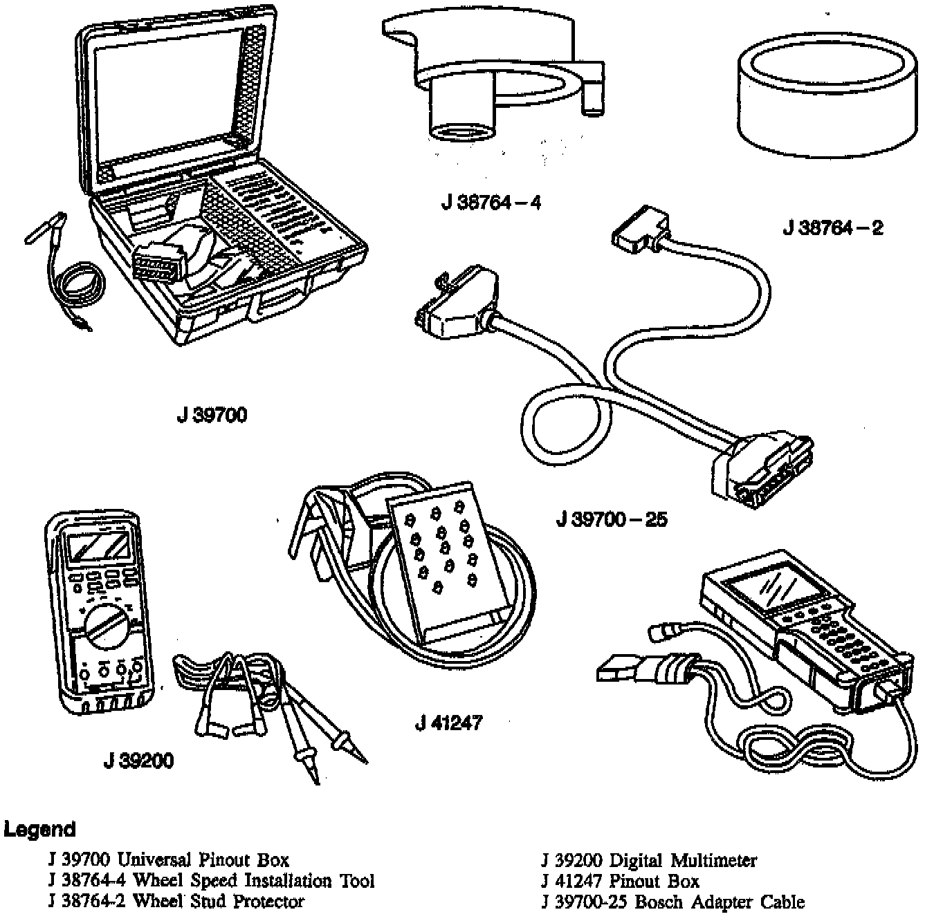 The J 39700 Universal Pinout Box must be used with the J 39700-25 Bosch Adapter Cable. Always connect the J 39?00 assembly to the vehicle harness and/or EBTCM as directed by the diagnostic table. Ensure the ignition is OFF when connecting or disconnecting the J 39700.