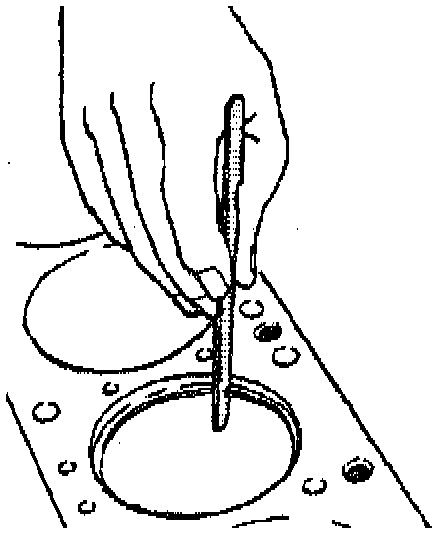 1. Measure the piston ring end gap using the following procedure:a. Place the piston ring in the area of the bore where the piston ring will travel (approximately 25 mm or 1 inch down from the deck surface). Be sure the ring is square with the cylinder bore by positioning the ring with the piston head.