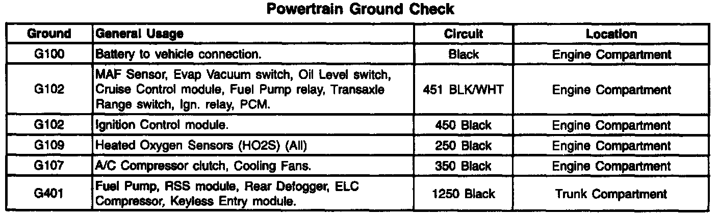 Check the grounds listed in the Powertrain Ground Check table for the following conditions: