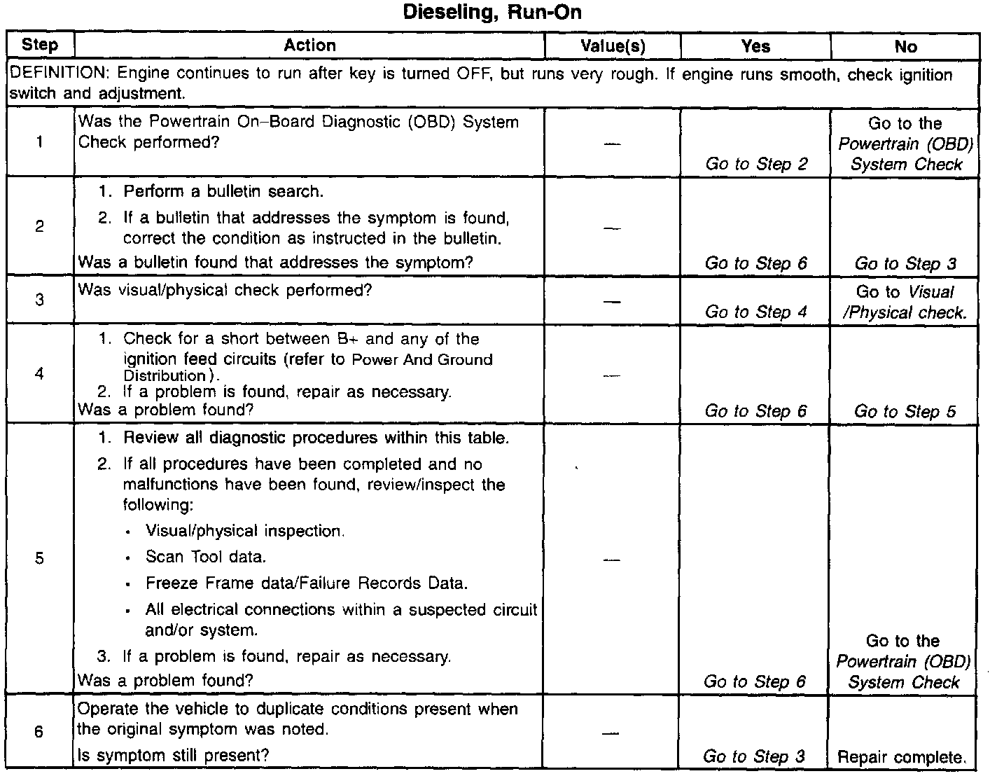 Dieseling/Run-On