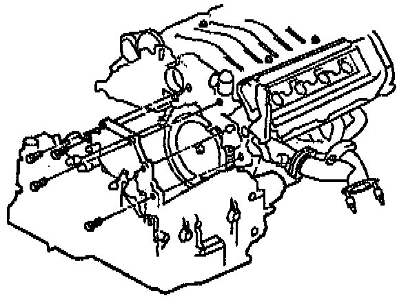 6. Install the engine to transmission bolts.