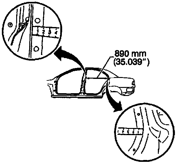 Diagonal of Upper B Pillar to Lower B Pillar: