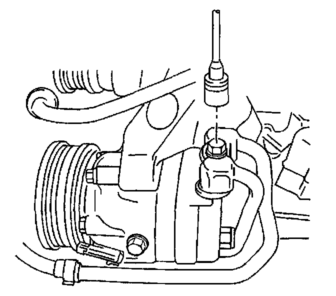 Tighten the compressor hose to oil pan bolt to 8 N.m (71 lb in).