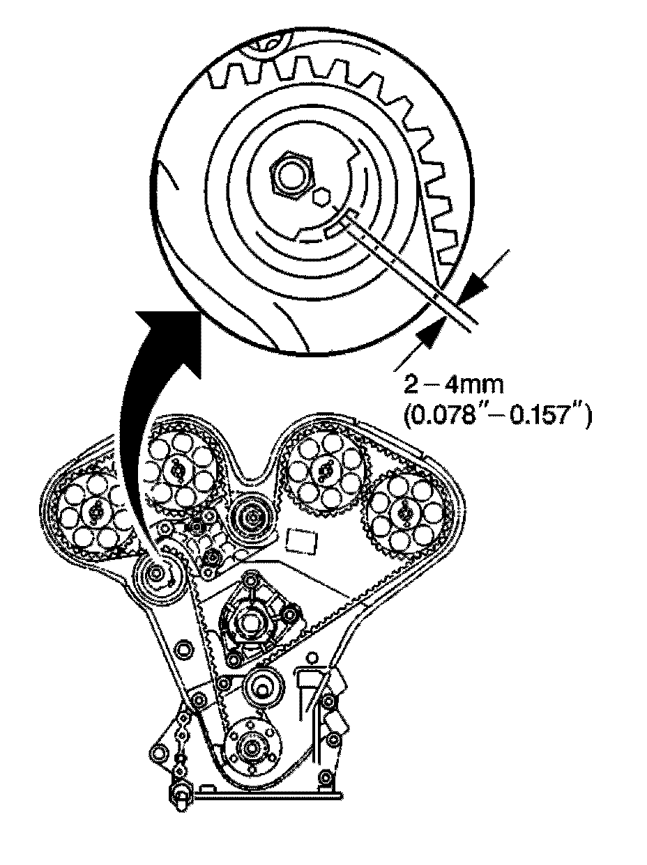 It may take several repeated adjustments and engine revolutions to achieve the proper timing belt alignment set points.