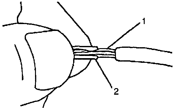 ^ Overlap the two stripped wire ends and hold them between your thumb and forefinger.