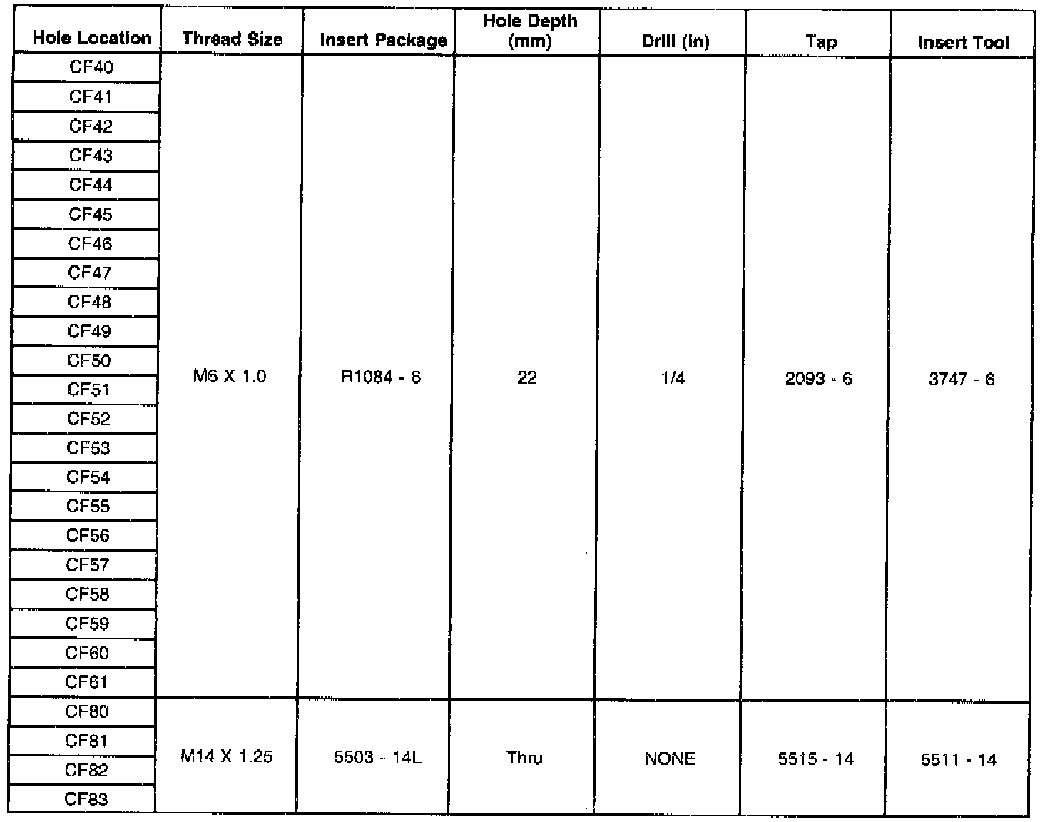 Thread Repair Specifications