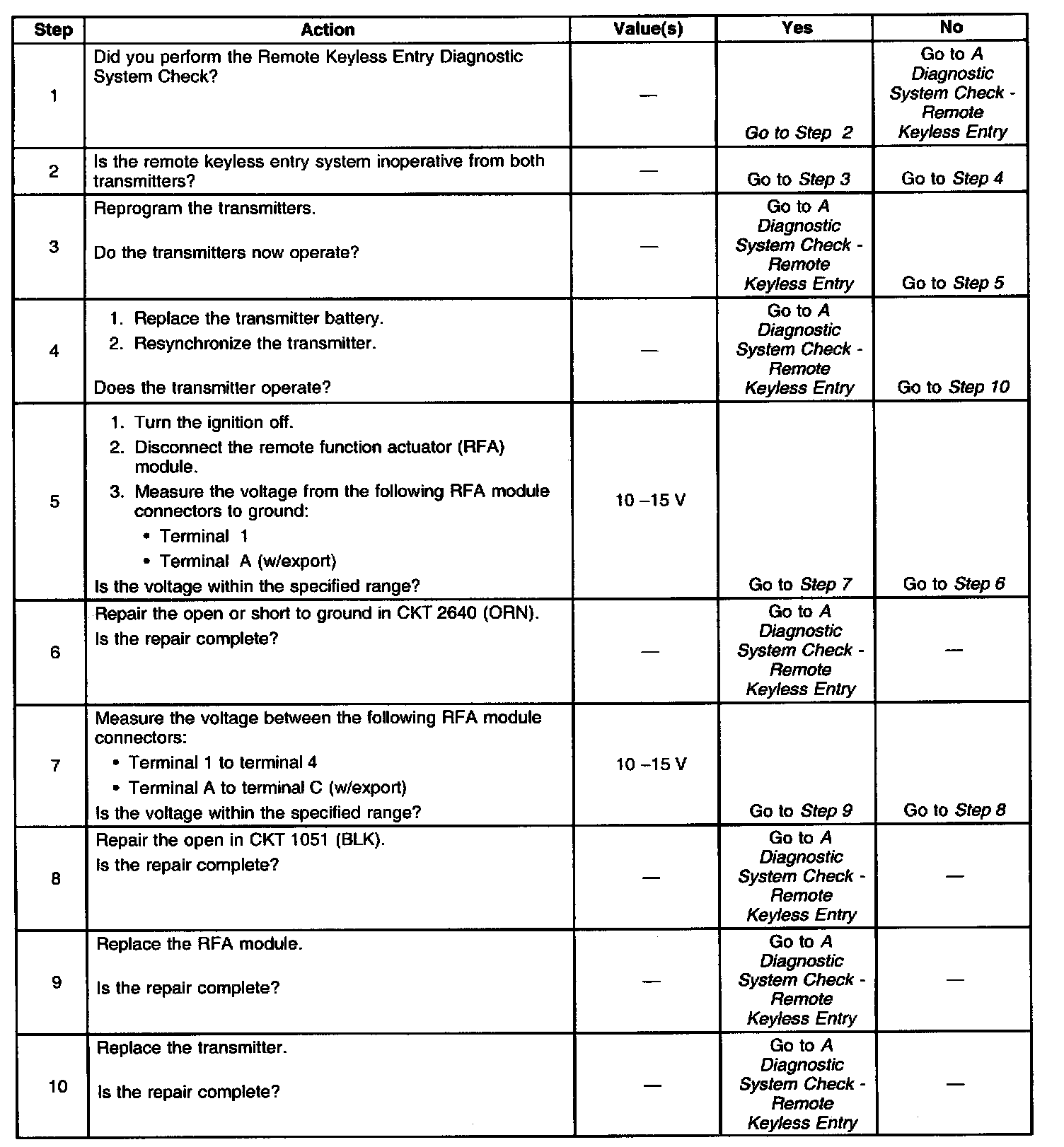 Remote Keyless Entry System Inoperative