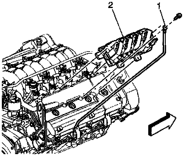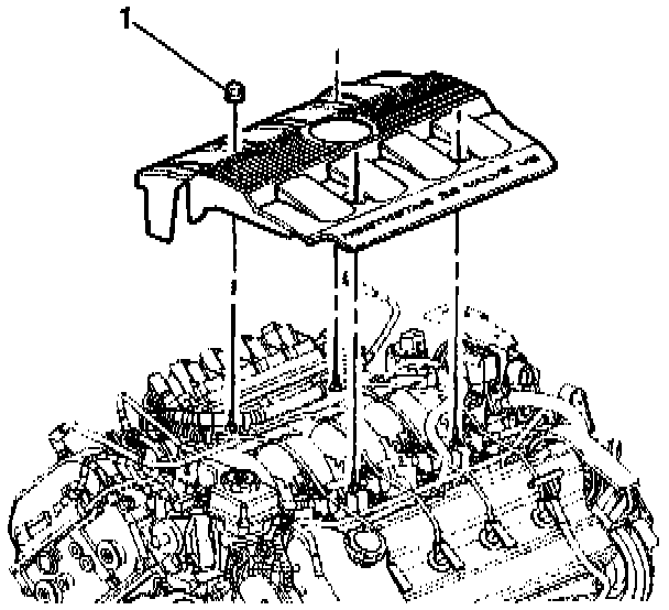 8. Install the intake manifold sight shield with four nuts (1). Tighten the intake manifold sight shield nuts to 3 Nm (27 inch lbs.).