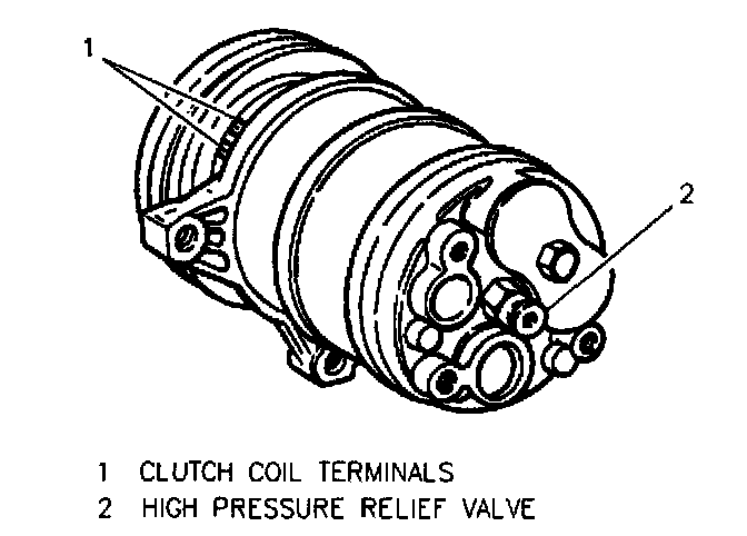 The vehicle uses an HD-6 compressor which is a six cylinder axial-type mechanism consisting of three double-ended pistons actuated by a swash plate shaft assembly. The compressor is located on the lower right of the engine centerline (right-front corner of the engine compartment), and is belt-driven from the crankshaft pulley. The compressor performs two main functions. It provides pressure and temperature levels at which heat exchange can take place in the condenser by compressing the low-pressure refrigerant vapor from the evaporator into a high-pressure, high-temperature vapor. It also pumps refrigerant and refrigerant oil through the A/C system.