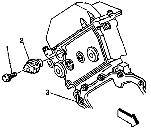 2. Remove the retaining bolt (1) and cam sensor (2).