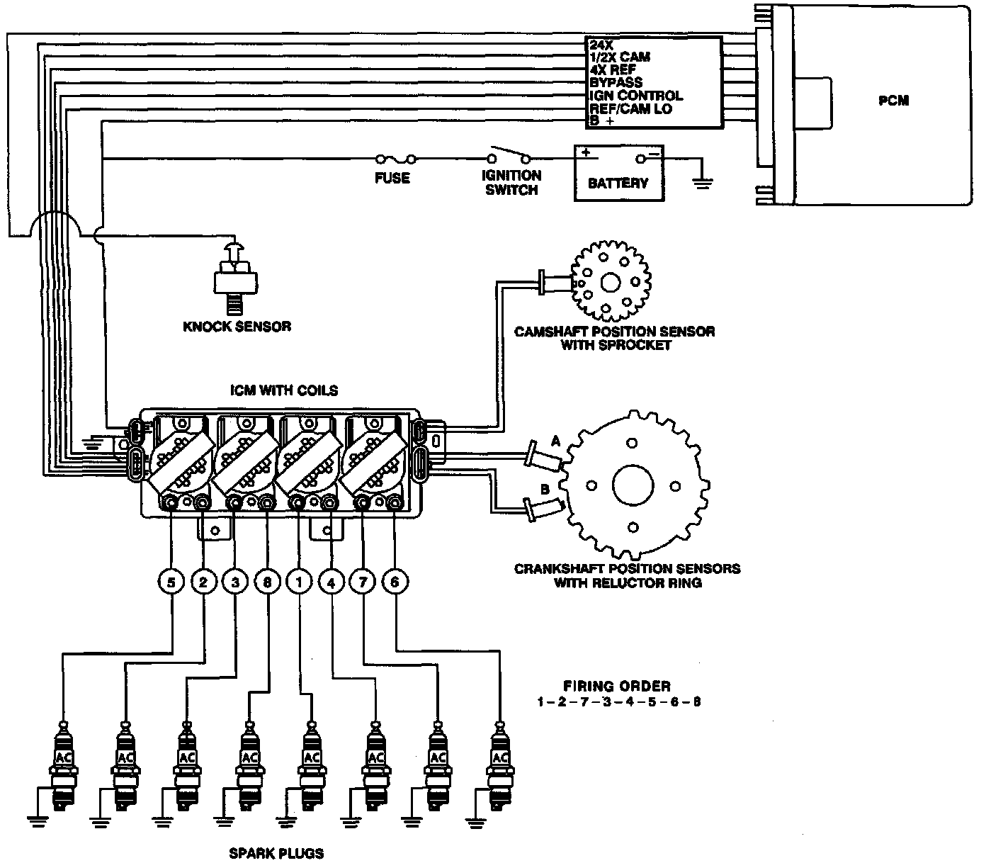 This Powertrains Ignition Control System controls fuel combustion by providing a spark to ignite the compressed air/fuel mixture in each cylinder at the correct time. This ignition control system has several advantages over a mechanical distributor ignition system.
