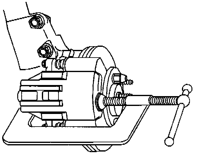 IMPORTANT: Do not use a screwdriver or pry bar to compress the caliper piston into the caliper. Any damage to the piston boot could cause corrosive elements to enter the piston sealing area and lead to the piston seizing in the caliper bore.