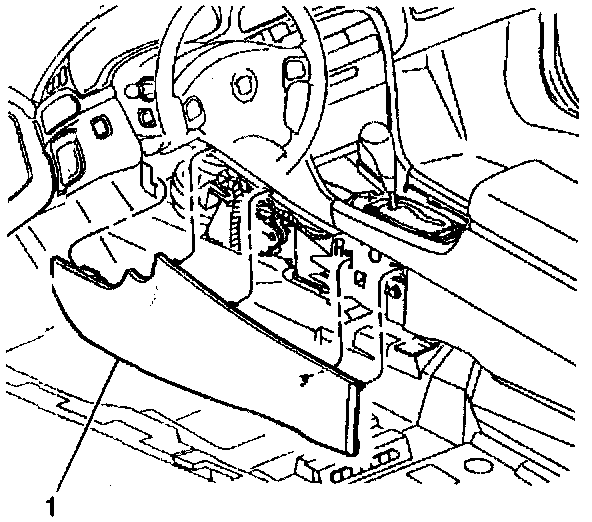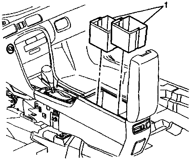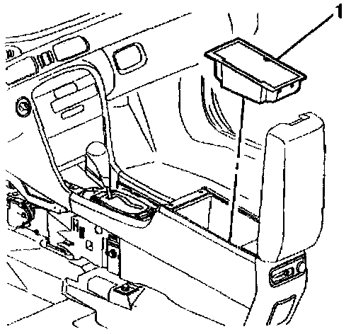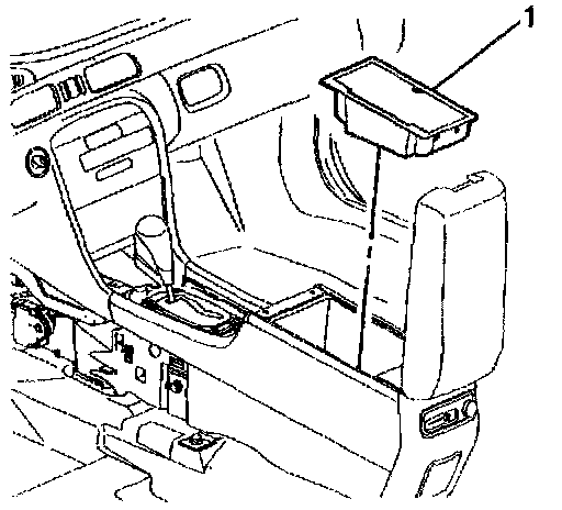 4. Open console storage bin door and remove storage bins (1) or CD changer as needed. Refer to Console Storage Bin Replacement (LHD) or Remote CD Changer Replacement in Entertainment.