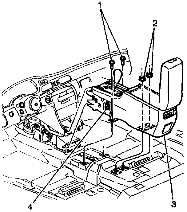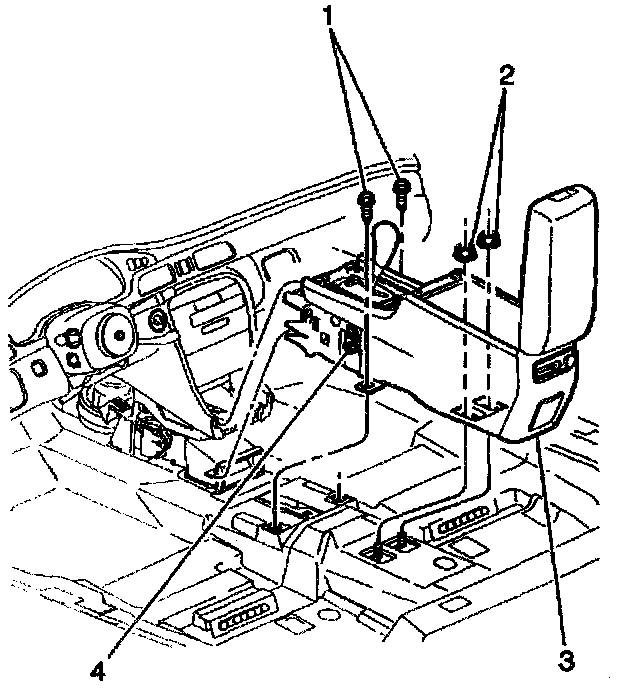 IMPORTANT: Use care when removing the console. The metal bracket can come in contact with the seats and damage the material.