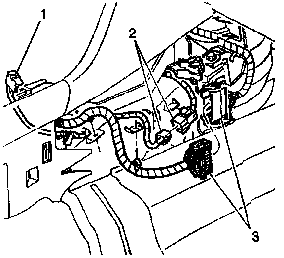 15. Disconnect electrical connectors (1 through 3) from both side openings at front of console.