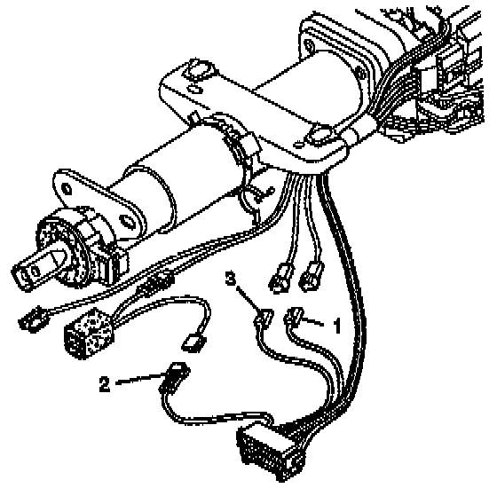 4. Install the blue (1), black (2) and gray (3) connectors of the turn signal and multifunction switch assembly.