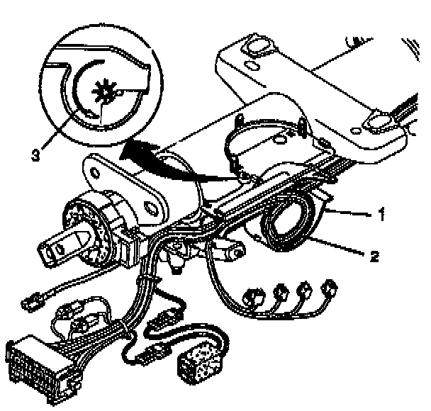 Important: The electrical contact must rest on the turn signal cancel cam assembly.1. install the turn signal and multifunction switch assembly (1).
