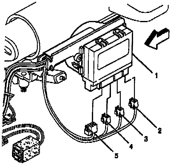 9. When working on the power tilt and telescope column install the green (5), brown (4), natural (3) and black (2) connectors into the E&C interface module assembly (1).