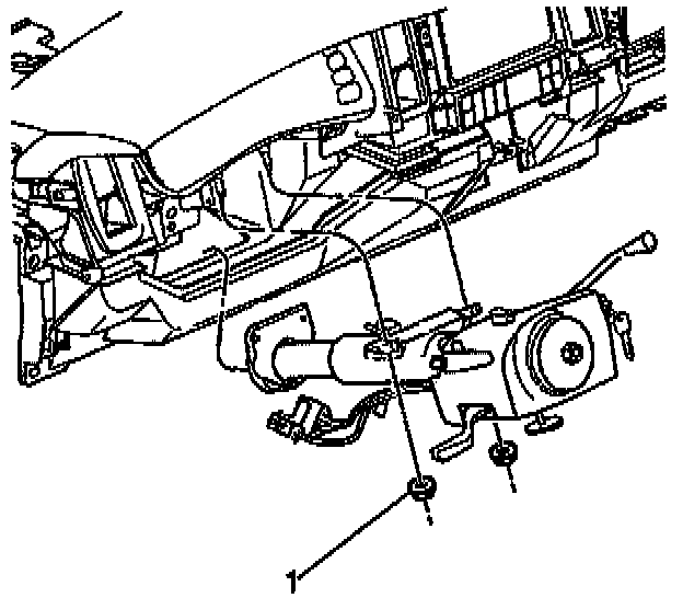 13. Remove the two nuts (1) securing the steering column to the instrument panel.